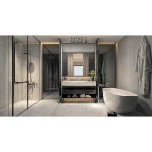 Stellar White Mermer, saf beyaz zemin üzerinden mavi, gri ve pembe tonlarının geçişi olduğu özel bir doğal taştır. Çok yönlü bir kullanım alanı olan bu mermer mimarlar tarafından projelerde sıkça tercih edilmektedir.